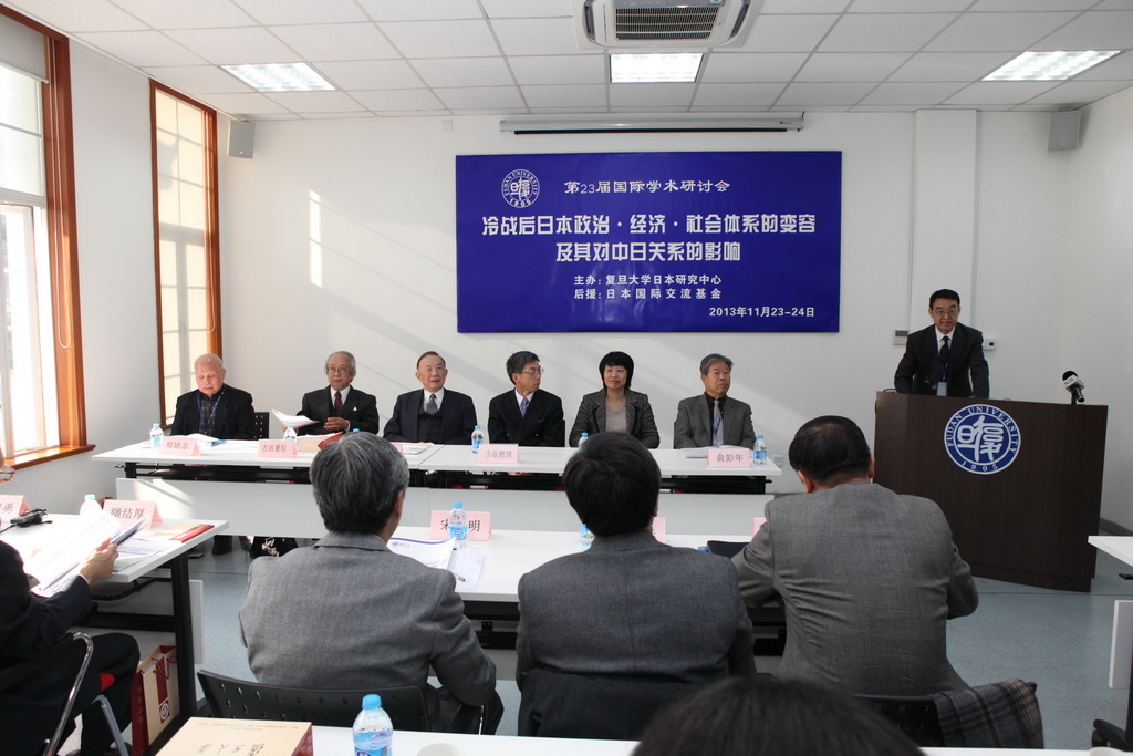 2013年11月23-24日,中心举办第23届国际学术研讨会“冷战后日本政治·经济·社会体系的变化及其对中日关系的影响”。原中国外交部副部长、驻日大使徐敦信,中国商务部亚洲司副司长宋耀明,外交部参赞苟皓东,原日本外务省欧亚局长、驻荷兰大使东乡和彦,原日本驻上海总领事、驻尼泊尔大使吉田重信,中国社科院日本研究所党委书记、副所长高洪以及来自复旦大学、北京大学、吉林大学、南开大学、上海国际问题研究院、上海社科院、日本庆应大学、早稻田大学、山口大学、东京财团等机构的中日学者和政界人士70余人出席研讨会。在研讨会前举行的“中日和平友好条约签署35周年纪念特别演讲会”上,徐敦信、吉田重信、原上海市政协副主席郑励志分别作了“信守条约原则精神,推动两国关系克难前进”、“围绕钓鱼岛问题中日关系的现状与展望”、“被低估的抗日战争中中国的贡献”等演讲。前日本外务省审议官、驻法大使小仓和夫发来书面演讲“日中关系的矛盾与课题”。日本国驻上海总领事小原雅博、我校许征副校长出席开幕式并致辞。