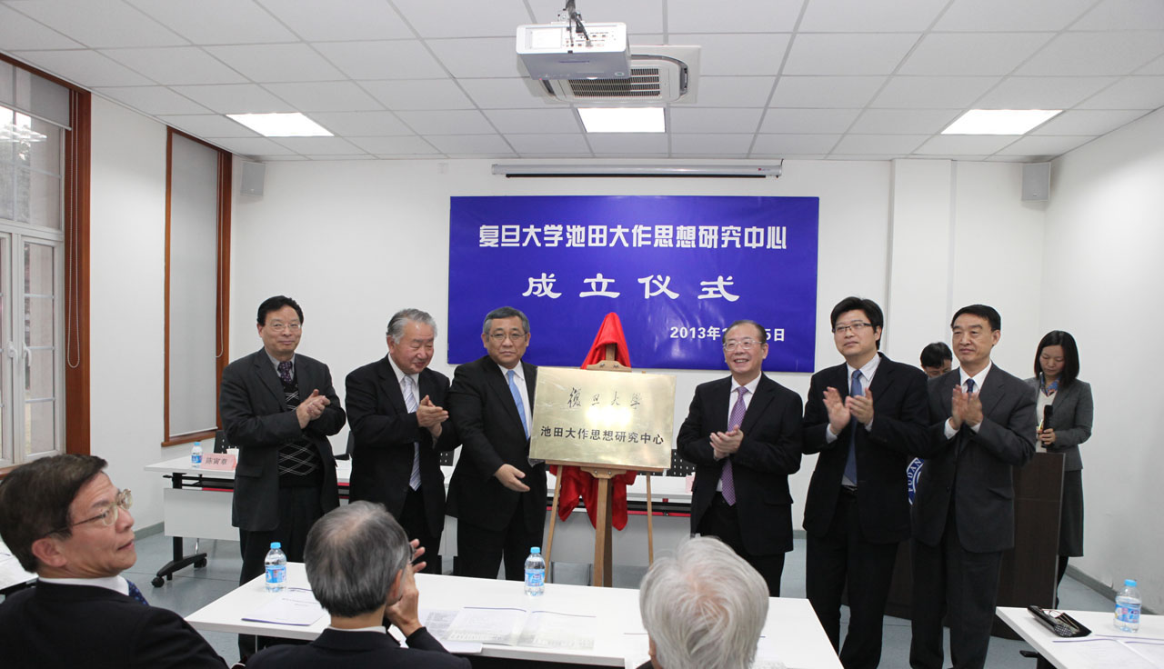 11月25日,复旦大学池田大作思想研究中心成立仪式在中心隆重举行。林尚立副校长出席仪式,并与理事长王荣华(校友、原上海市委副秘书长、原上海市政协副主席),创价大学副校长寺西宏友,副理事长牧野长生等一起揭牌。随后,林尚立副校长向王荣华理事长等颁发了聘书。