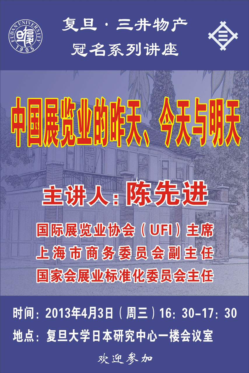 4月3日,中心主办讲座“中国展览业的昨天、今天与明天”,由国际展览业协会主席、上海市商务委员会副主任、国家会展业标准化委员会主任陈先进主讲。