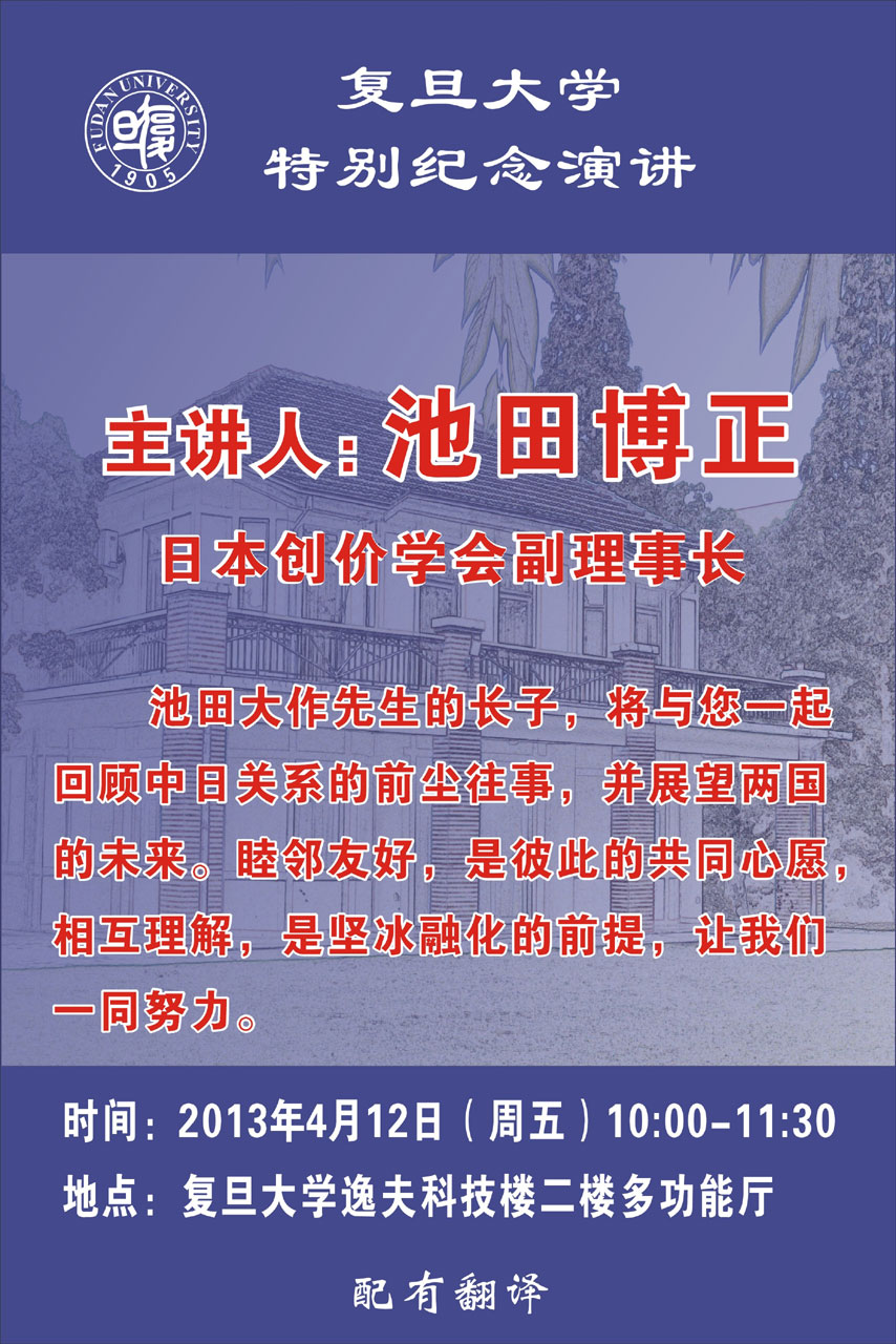 4月12日,日本创价学会副理事长池田博正以及创价大学新任校长马场善久一行来访。