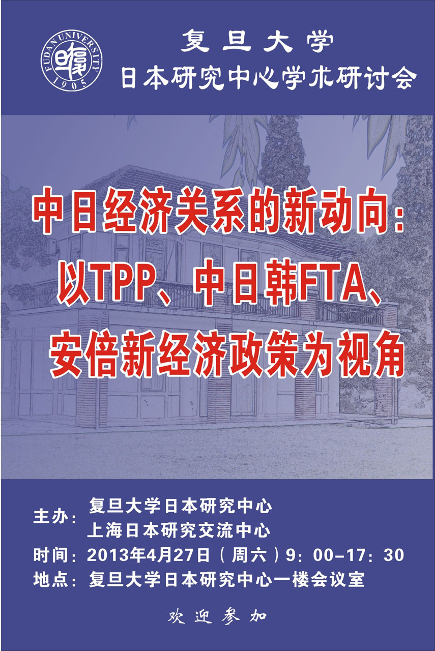 4月27日,由中心和上海市日本研究交流中心联合主办的“中日经济关系的新动向:以TPP、中日韩FTA、安倍新经济政策为视角”学术研讨会在中心召开。