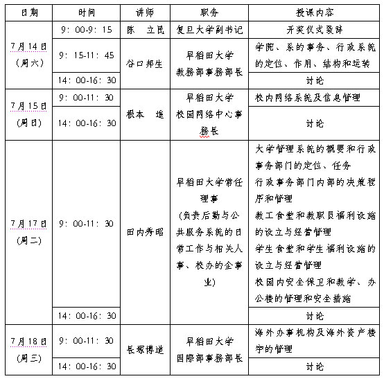 2007年7月14日至18日,日本早稻田大学常任理事田内为首的讲师团来中心开设了“大学内涵发展与行政后勤公共服务系统管理系列讲座”。