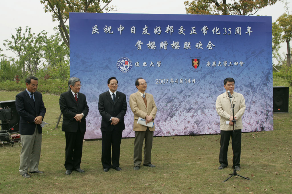 上海三田会是日本庆应大学的在沪校友会,拥有300余名会员,均是在沪日资大企业的高级经营管理人员。现驻沪日本总领事隈丸优次也是会员之一。鉴于庆应大学与本校有着长期的友好交流合作,今年又适逢中日友好邦交35周年,上海三田会提出了希望在复旦校园内同我校在庆应大学留学或进修过的师生共同观赏樱花,并向复旦大学捐赠一批樱花。