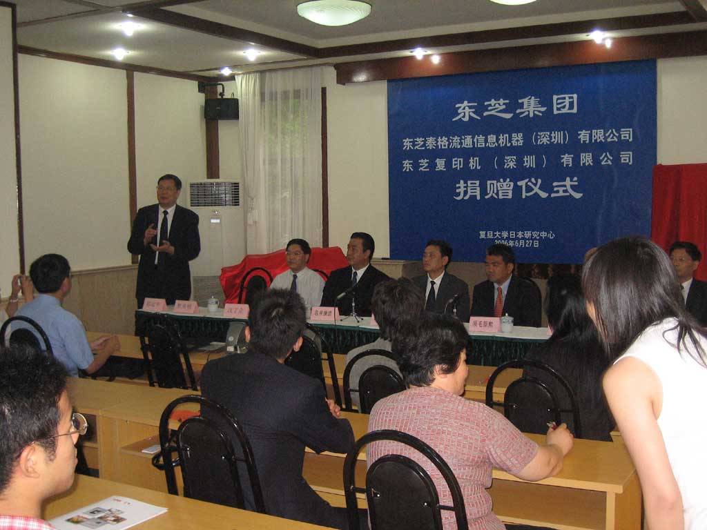 6月27日下午4点至5点,在日本研究中心举行简短的捐赠仪式,上述两家东芝公司的日方总经理名井康浩和须毛原出席。