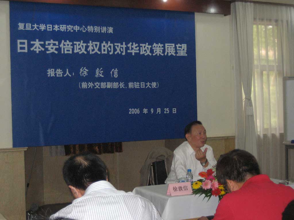 2006年9月25日下午,中心顾问教授、前外交部副部长、前驻日大使徐敦信教授来中心演讲——《日本安倍政权的对华政策展望》。