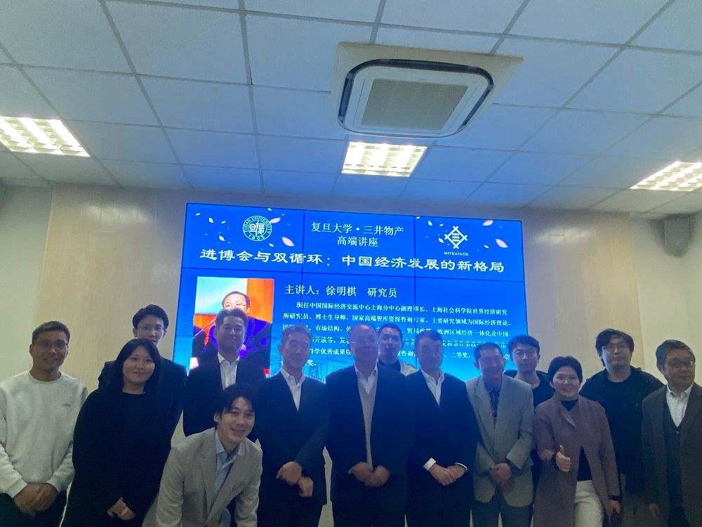 2023年11月29日,中国国际经济交流中心上海分中心副理事长、上海社会科学院世界经济研究所徐明棋研究员主讲复旦大学·三井物产高端讲座,主题为“进博会与双循环:中国经济发展的新格局”。