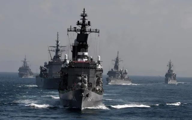 日本海上自卫队舰只编队正在航行。图源:新华社